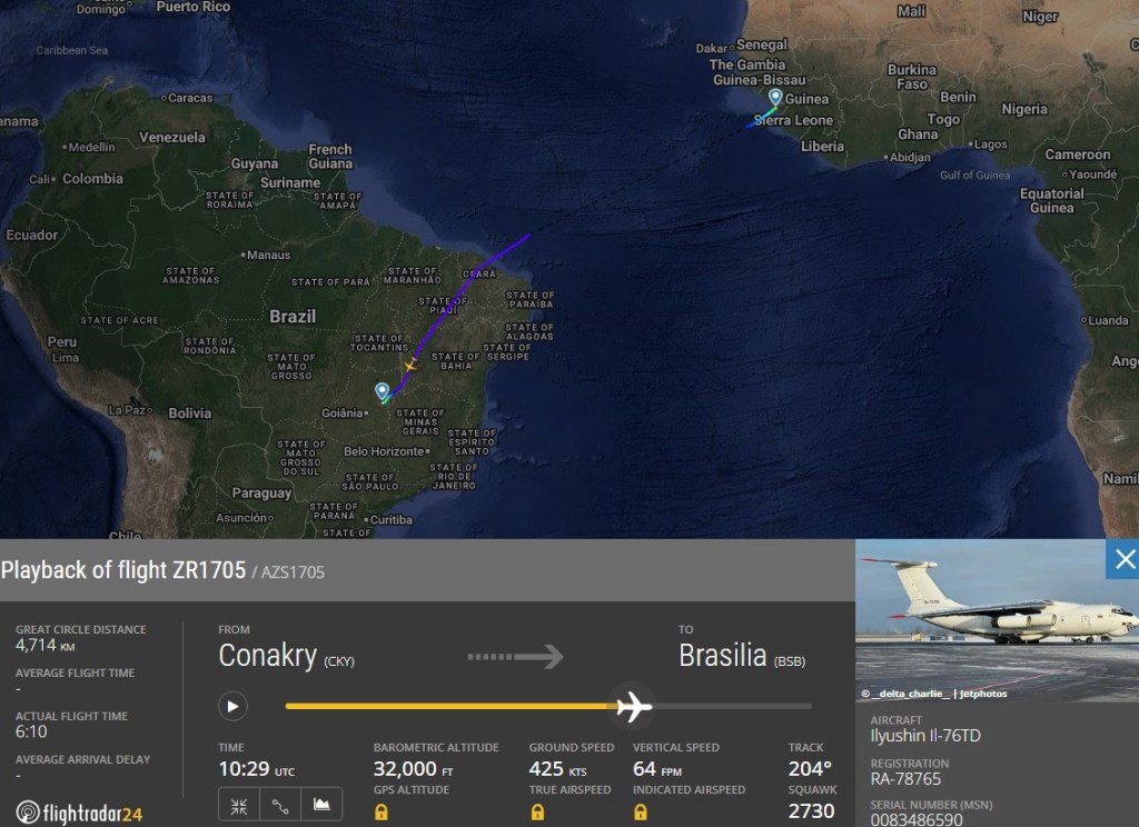 Uma aeronave russa modelo Ilyushin IL-76 pousou na manhã deste domingo no Aeroporto Internacional de Brasília após um voo longo com várias paradas, saindo de Moscou.
