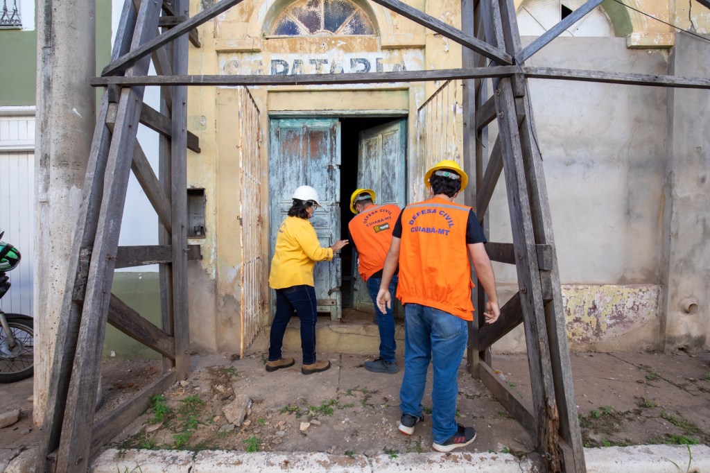 A superintendente do IPHAN em Mato Grosso, Ana Joaquina da Cruz Oliveira, acompanhou a vistoria e providenciou autorização formal para que os agentes da Defesa Civil pudessem entrar no imóvel, que estava trancado. Um chaveiro foi chamado para abrir os cadeados, e a Polícia Militar esteve presente garantindo a segurança durante a inspeção.