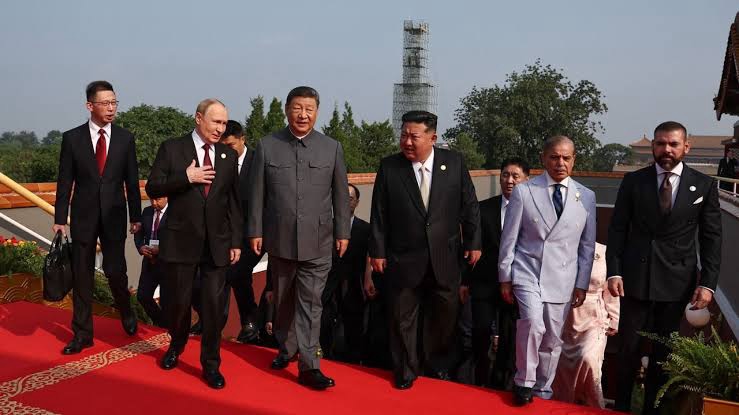 Na mesma tribuna estavam Vladimir Putin (Rússia), Kim Jong-un (Coreia do Norte) e Masoud Pezeshkian (Irã). A cena foi registrada justamente no coração da China comunista, durante a celebração dos 80 anos da vitória sobre o Japão na Segunda Guerra Mundial.