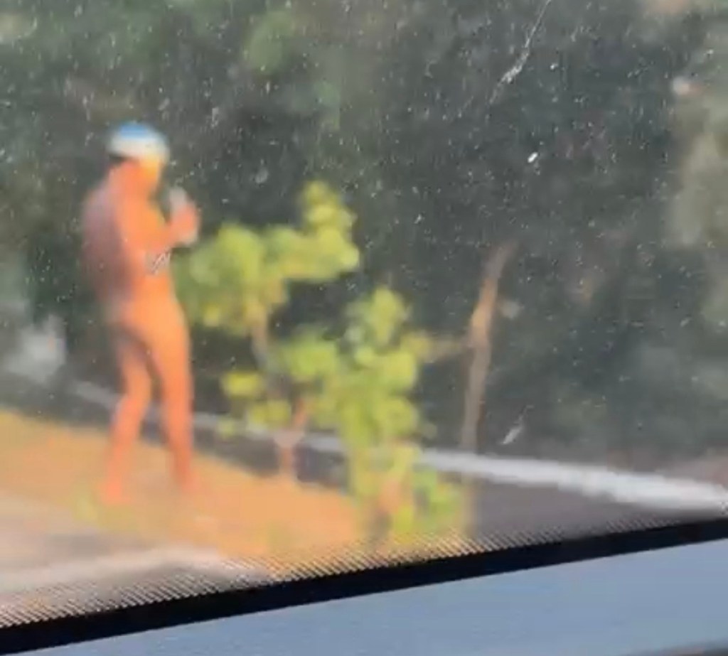 Na tarde desta quinta-feira (2), um episódio inusitado chamou a atenção dos cuiabanos: um homem foi flagrado caminhando nu pela Ponte do Rio Coxipó, na Avenida Fernando Corrêa da Costa. O vídeo, compartilhado amplamente nas redes sociais, mostra o indivíduo com um chapéu na cabeça, andando tranquilamente, enquanto o motorista que o grava comenta: “O cara andando nuzinho aqui na Fernando Corrêa, olha aí! Olha a folga dele, meu Jesus do céu. Esse é folgado!”
