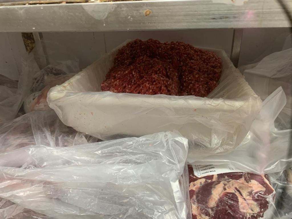 Durante a fiscalização, foram constatadas condições precárias, como esgoto a céu aberto nos fundos do local, ausência de produtos para higienização das mãos dos funcionários, falta de local adequado para guardar pertences pessoais e armazenamento inadequado de carnes em contato com o chão da câmara fria. Essas infrações já haviam sido notificadas anteriormente, mas o proprietário não tomou as providências necessárias, resultando na interdição total do estabelecimento.