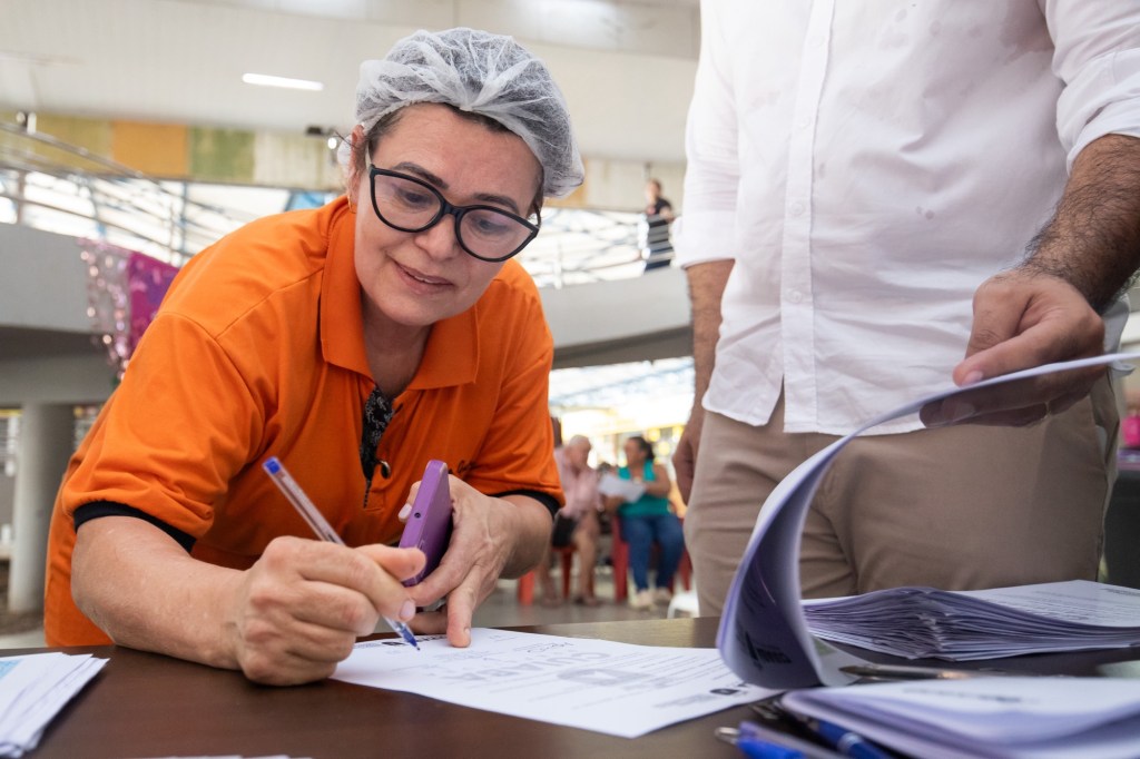 Na manhã desta terça-feira (21), a Prefeitura de Cuiabá, por meio da Secretaria Municipal de Desenvolvimento Econômico, Trabalho, Turismo e Agricultura, concretizou mais um importante passo para a valorização do comércio popular ao entregar 142 Termos de Permissão de Uso (TPUs) aos permissionários que atuam no Mercado do Porto, um dos principais polos de comércio e tradição de Cuiabá.