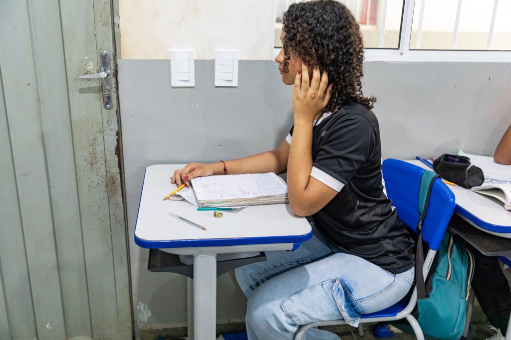 “Todos os dias, das 7h30 às 11h, assisto aulas de Matemática no YouTube. Estudo sozinha, pesquiso no Google e anoto tudo no meu caderno. Quando chego à escola, reviso o que aprendi nos livros”, conta, com o olhar firme de quem sabe onde quer chegar.