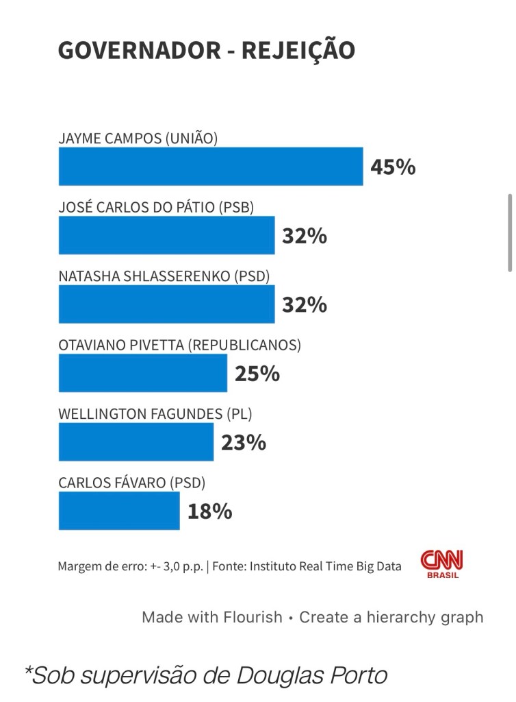 O estudo também avaliou o índice de rejeição dos pré-candidatos um dado que pode influenciar estratégias eleitorais nos próximos meses.